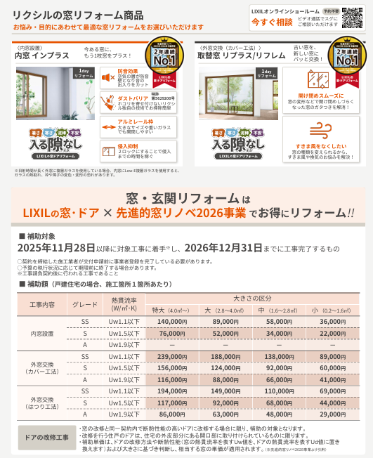 窓リフォーム(内窓 インプラス・取替窓 リプラス)