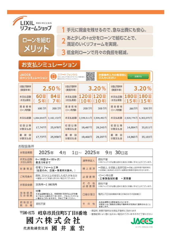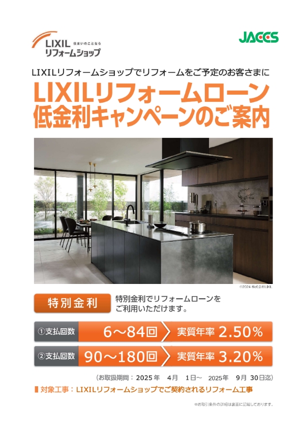 LIXILリフォームローン 低金利キャンペーンのご案内です。