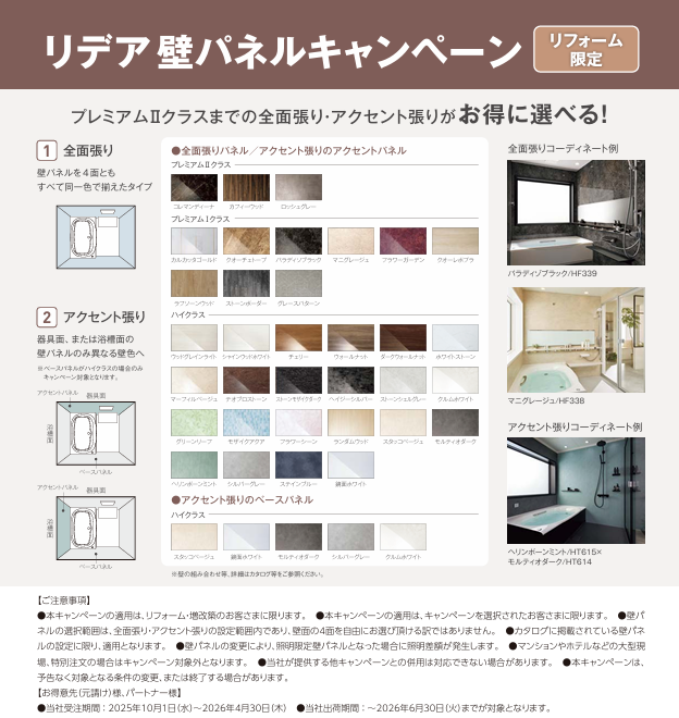 LIXILリデア壁パネルキャンペーン (リフォーム限定)2025年10月1日(水)~2026年3月31日(火)始まってます!!